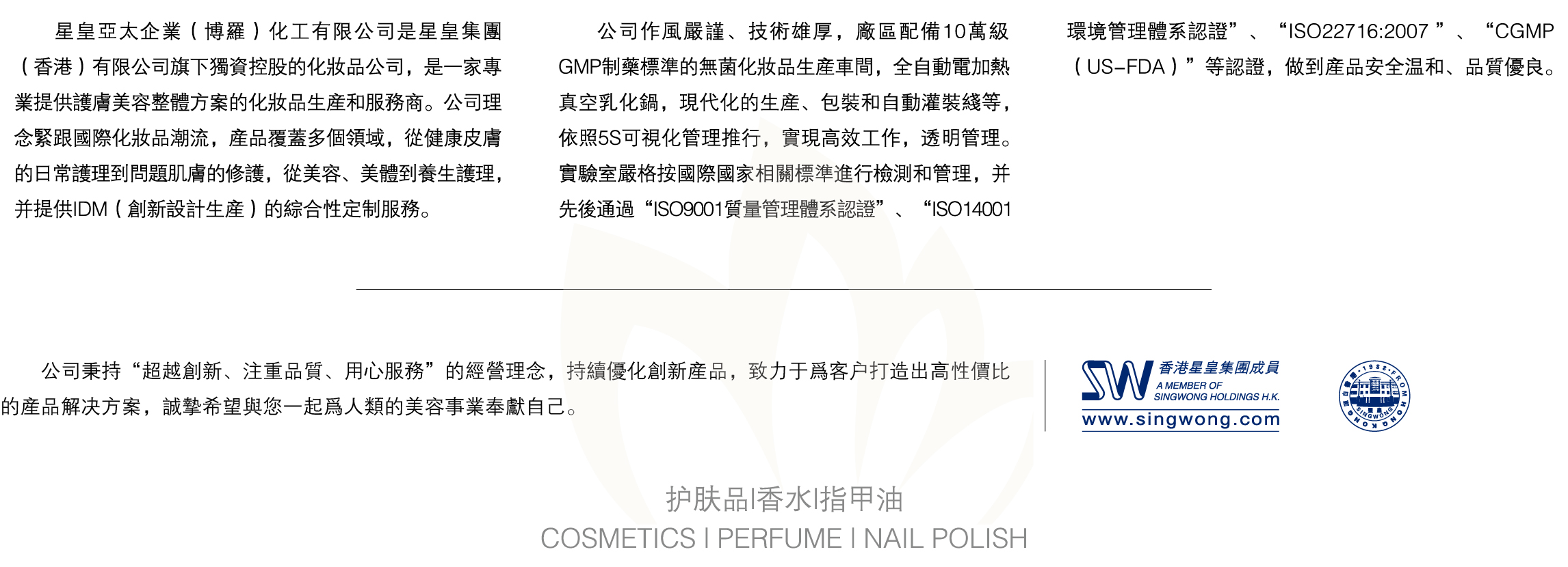 首頁 關于星皇 董事長致辭 涂料事業(yè) 日化事業(yè) 香精香料 集團資訊 服務中心