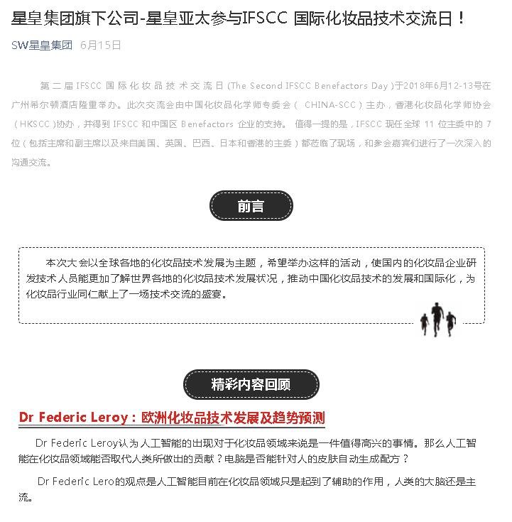 上一篇:國際化妝品化學(xué)家學(xué)會聯(lián)盟(IFSCC)主委 Vania Leite 教授一行來訪參觀星皇集團(tuán)